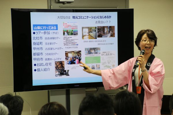 「初めから移住の目的がハッキリしている人はいない。ぜひ相談に来たり、山梨に実際に行って現地の人と話してほしい」とのメッセージに、うなずく参加者の姿がありました。
