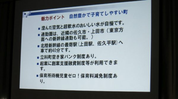 平成27年10月25日(日)、東京有楽町の交通開館にて、長野新潟富山石川の4県合同の移住セミナーが開催されました。 会場には、4県から様々な市町村がブースを構え個別相談にのっていました。 セミナースペースでは、各県の発表、移住者の体験談が発表されていました。 長野県からは、 南木曽町、筑北村、麻績村、小海町、佐久穂町、立科町、佐久市、上田市、長野市、飯山市の自治体が参加しました。 また、長野県宅地建物取引業協会、移住・住みかえ支援機構の参加しました。 その中から、抜粋して紹介します。
