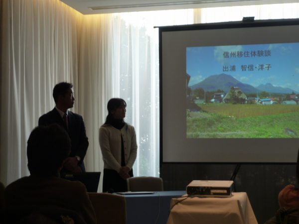 続いて、5年前に大阪から信濃町に移住された出浦さん夫婦から移住体験を聞きました。