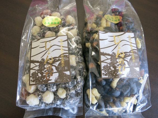 木島平村では、耕作を行わなくなった水田を大豆の畑にして大豆栽培を進めています。その大豆、黒豆を使用した「じょんのび豆菓子」がお土産として配布されていました。香ばしい風味がとてもおいしいお茶請けにぴったりの逸品でした。