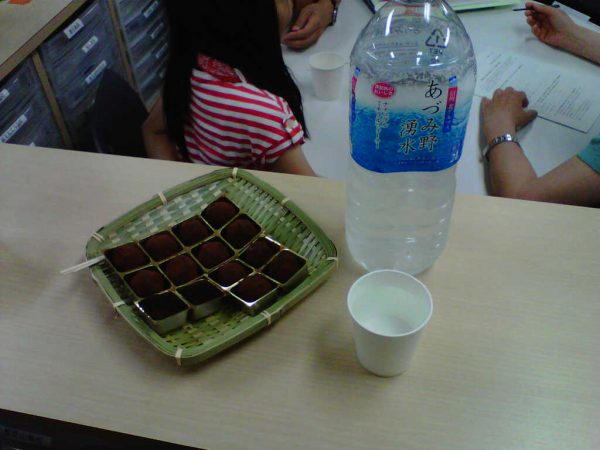 休憩中には、全国ご当地おやつ第三位に輝いた「とろけるりんごショコラ」を安曇野のおいしいお水とともに頂きました。