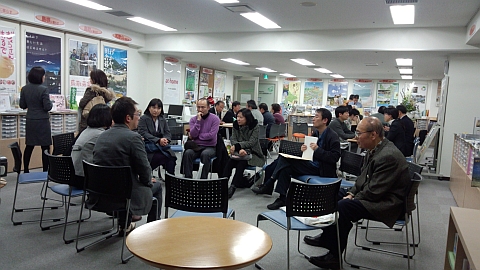 話の内容は、佐久市への移住の経緯、佐久市を選択した理由、移住後の生活状況、移住希望者へのアドバイスが中心で、プロジェクターを使い佐久市の春夏秋冬の写真なども紹介しました。
