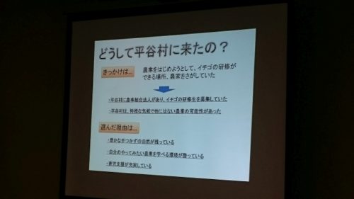 平谷村は自分がやってみたい農業ができると言うことで選びました。