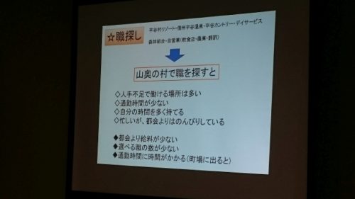 その方たちに聞いてきましたが、温泉、スキー場、デイサービス等あるので、仕事を選ばなければ、移住された方の9割くらいが村内の施設で働いています。その中でも3割の方は自分でお店を作っています。